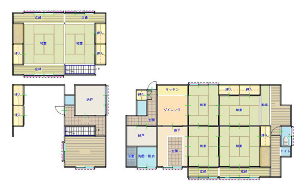 | 間取り | 6DK 1階:和室(8・6・6・6帖)、DK、浴室、トイレ、納戸 離れ:和室(8・6帖)、納戸 |